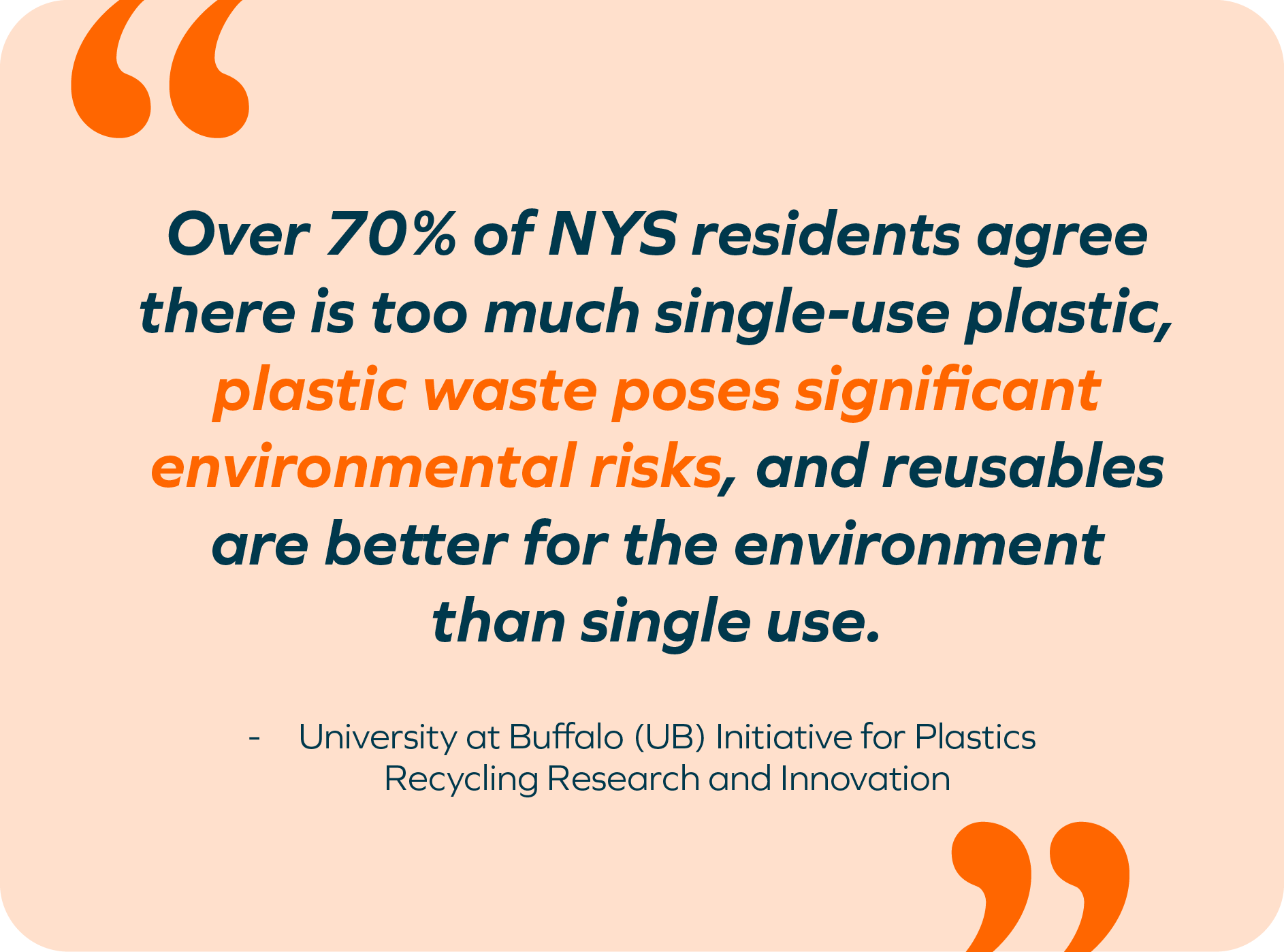 Access is another challenge. Takeout orders often still arrive in single-use packaging, and many restaurants do not offer reusable service ware alternatives. For many NYS residents, reuse simply is not always available as an alternative option.